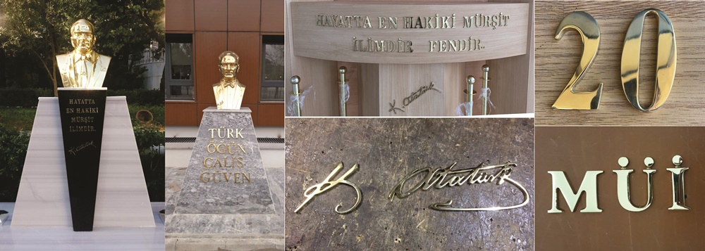 50 cm Pirinç Atatürk İmzasıYÜKSEKLİKGENİŞLİK20 cm50 cmPirinç Döküm Malzemeden Üretilmiştir...